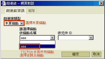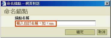 輸入錨點名稱(錨點名稱勿重複),確定後頁面即產生 |
