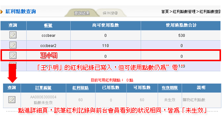 建議若有設定「點數有效期限」,可在會員需知或是購物需知中加註提醒會員,以免造成客訴。 |