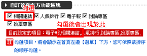 自訂首頁左方功能區塊:勾選「相關連結」,會出現「請稍待,資料載入中」的訊息框,待訊息框關閉後代表資料已載入,下方紅色框中便會有相關連結。