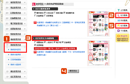 設定的相關連結,會顯示在商城首頁左右側的功能區塊,以banner圖片或文字連結呈現。