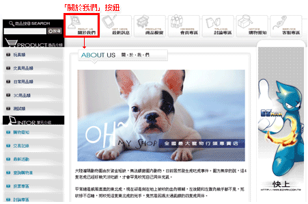 「關於我們」單元,可以詳細介紹商城或介紹公司,讓網友進一步認識您。此單元建議必填,否則前台「關於我們頁面」呈現空白。